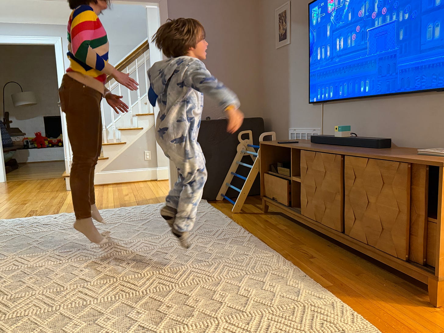 Then one day, while scrolling social media (yes, even pediatricians chase dopamine sometimes), I came across a colorful little cube in front of a TV. A family was jumping, laughing, sweating, having fun—together. I paused. “What is this?”